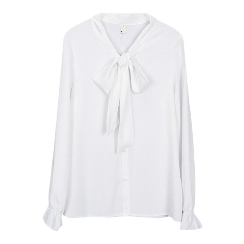 首元にあしらったボウタイが、装いにさりげない華やかさを添えるブラウス。