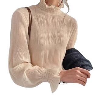 繊細な透け感が美しいシアープリーツ袖と、ベストを重ねたようなレイヤードデザインが魅力のトップス。