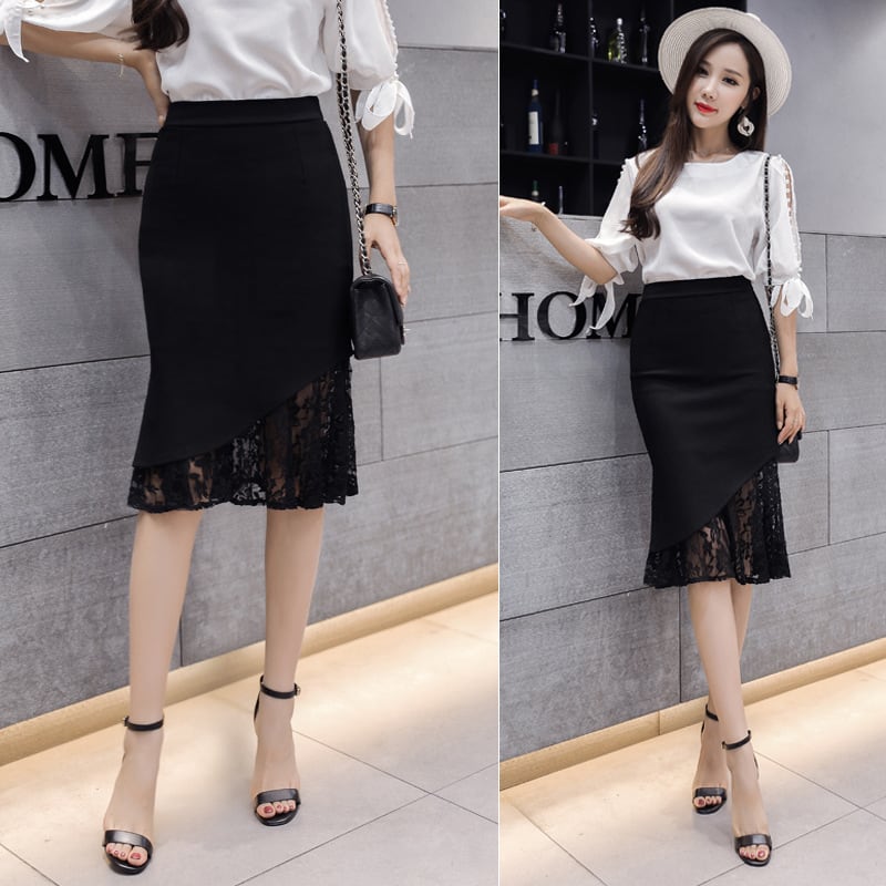 ミニマルなデザインの中に、繊細なレースのニュアンスを織り込んだアシンメトリースカート。