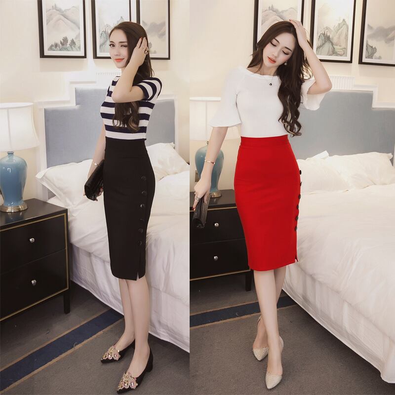 サイドボタン ペンシルタイトスカート