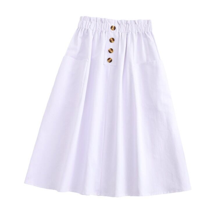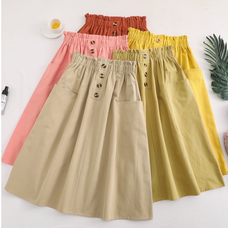 フロントボタン ギャザーロングスカート