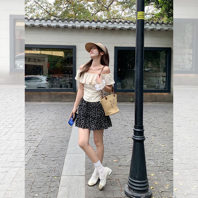 デコルテラインをきれいに見せるオフショルデザインに、ふんわりとしたフリルを重ねたカットソー。程よい肌見せが、女性らしさと軽やかさを引き立て、夏のスタイリングに季節感をプラスしてくれる一枚です。