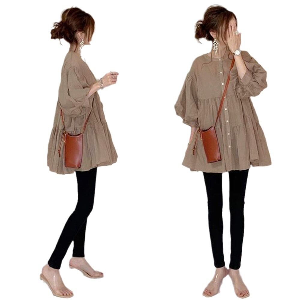 ふんわりと広がるシルエットが、体のラインをやさしく包み込むチュニック。胸下から入ったギャザーが自然なフレアを生み、動くたびに軽やかな表情を演出。甘くなりすぎず、ナチュラルな雰囲気で着こなせるのが魅力です。
