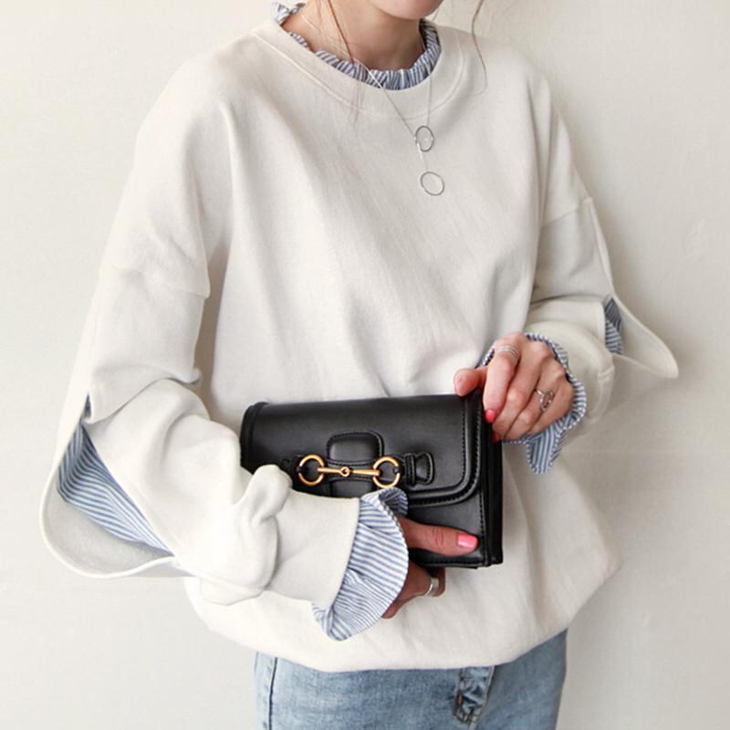異素材を重ねたようなデザインが目を引く、レイヤード風のスウェット。