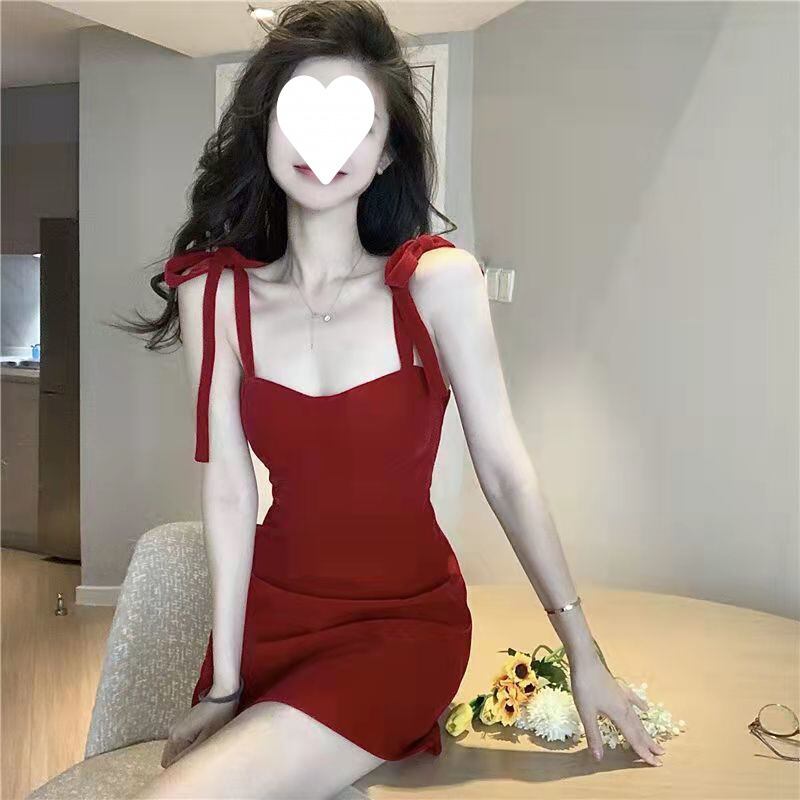 華奢なリボンストラップが視線を引き寄せる、洗練された印象のスリムミニワンピース。