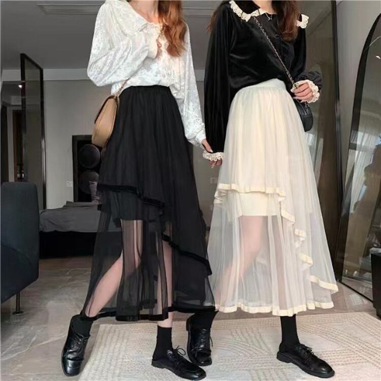 アシンメトリーなヘムラインが甘さを程よく引き締め、フェミニンだけでなくモードやストリートテイストにも自然にマッチ。インナーとのコントラストが楽しめるデザインで、シンプルなトップスを合わせるだけでも着映えが叶います。
