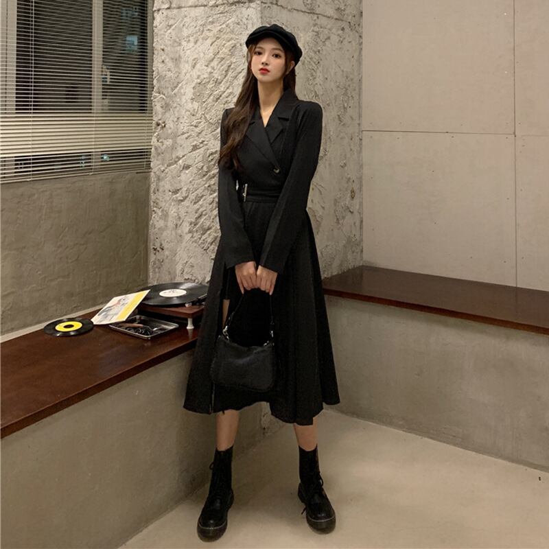 フロントに並んだダブルボタンが縦ラインを強調し、自然とスタイルアップを叶えてくれます。ウエスト位置には程よくメリハリをつけたデザインを取り入れ、締めつけ感なく女性らしいバランスに仕上げました。