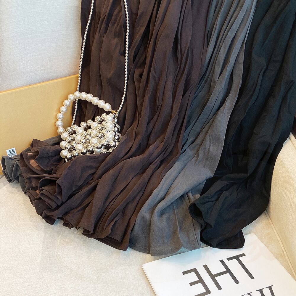 空気をまとうような軽やかさと、流れるようなドレープが印象的なロングフレアスカート。