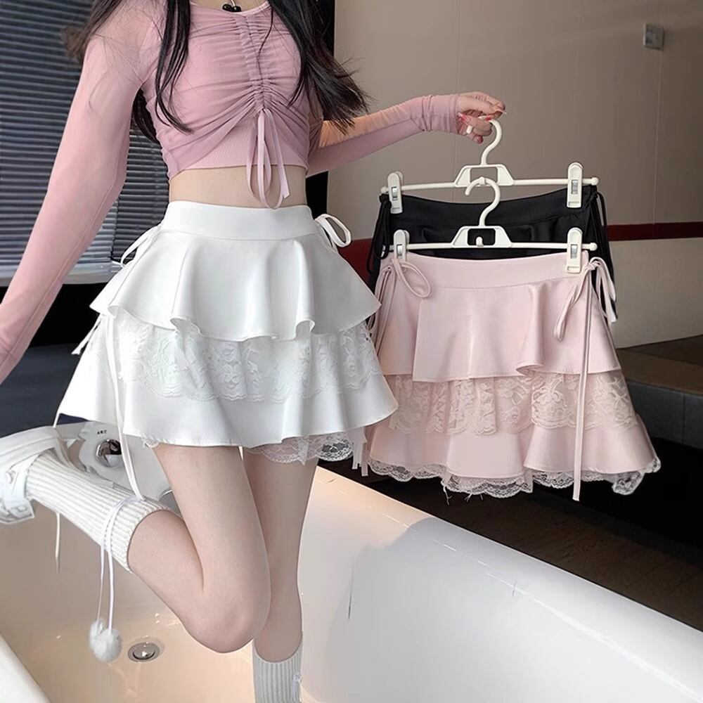 サイドリボン レースティアードミニスカート