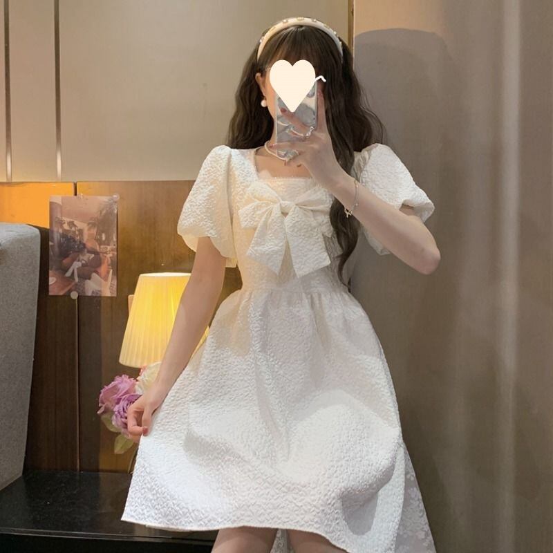 上品な凹凸感のある生地が、シンプルなホワイトでものっぺり見せず、さりげなく高見えを叶えてくれる「レディリボン ジャガードミニワンピース」。胸元のビッグリボンが華やかなアクセントになり、顔まわりをぱっと明るく演出します。