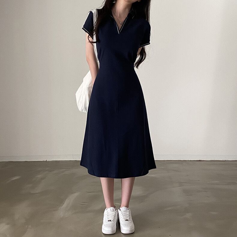 小さめのポロカラーとさりげない配色ラインが、シンプルな中に洗練されたアクセントを添えます。
