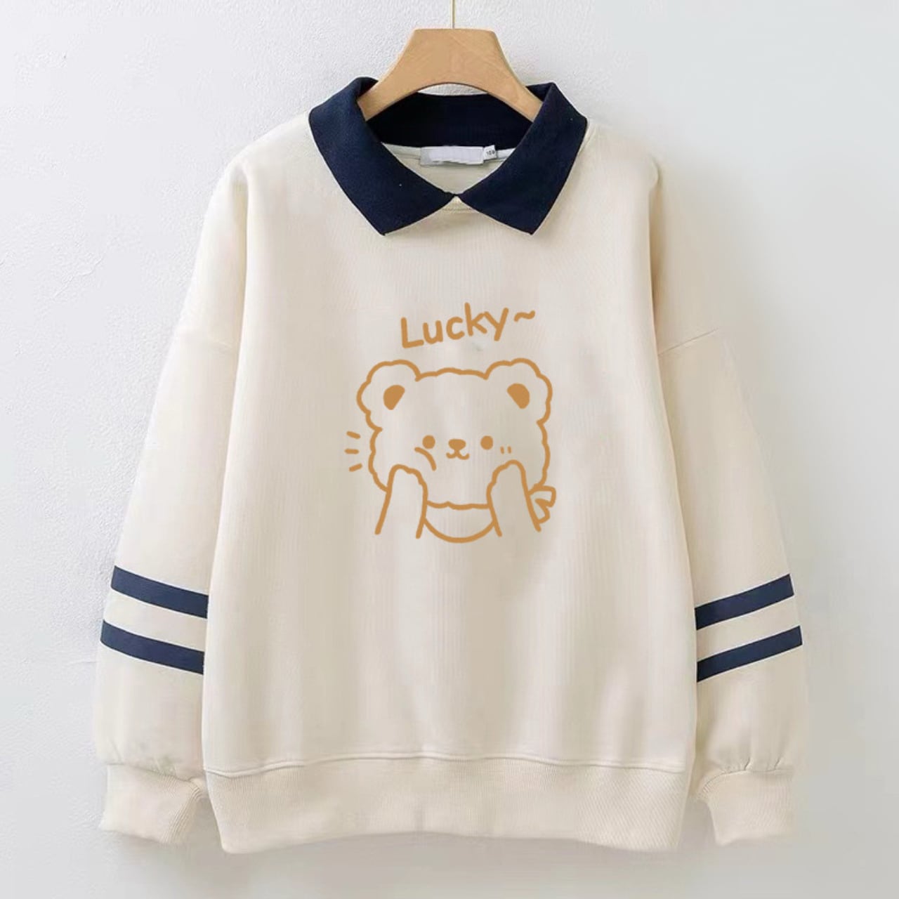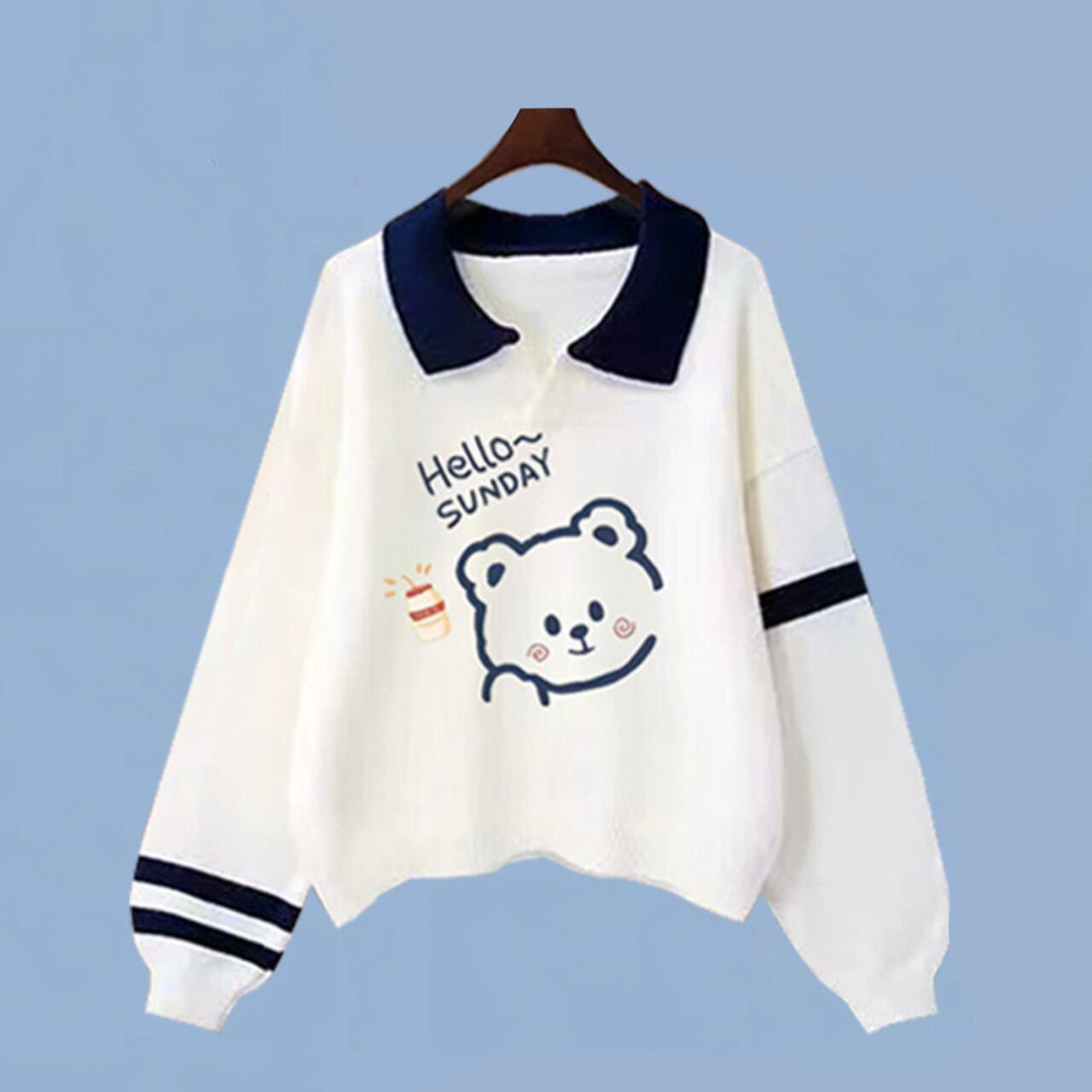 配色の襟デザインがきちんと感をプラスし、カジュアルなスウェットながらもどこかスクールライクな雰囲気に。袖に入ったラインディテールが程よいアクセントになり、1枚で着てもスタイリングが決まります。