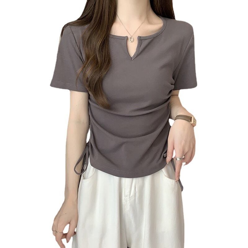 首元に入ったキーネックのカッティングが、ベーシックなTシャツに程よい抜け感をプラス。開きすぎない絶妙なラインで、デコルテをきれいに見せながら上品な印象に仕上げてくれます。