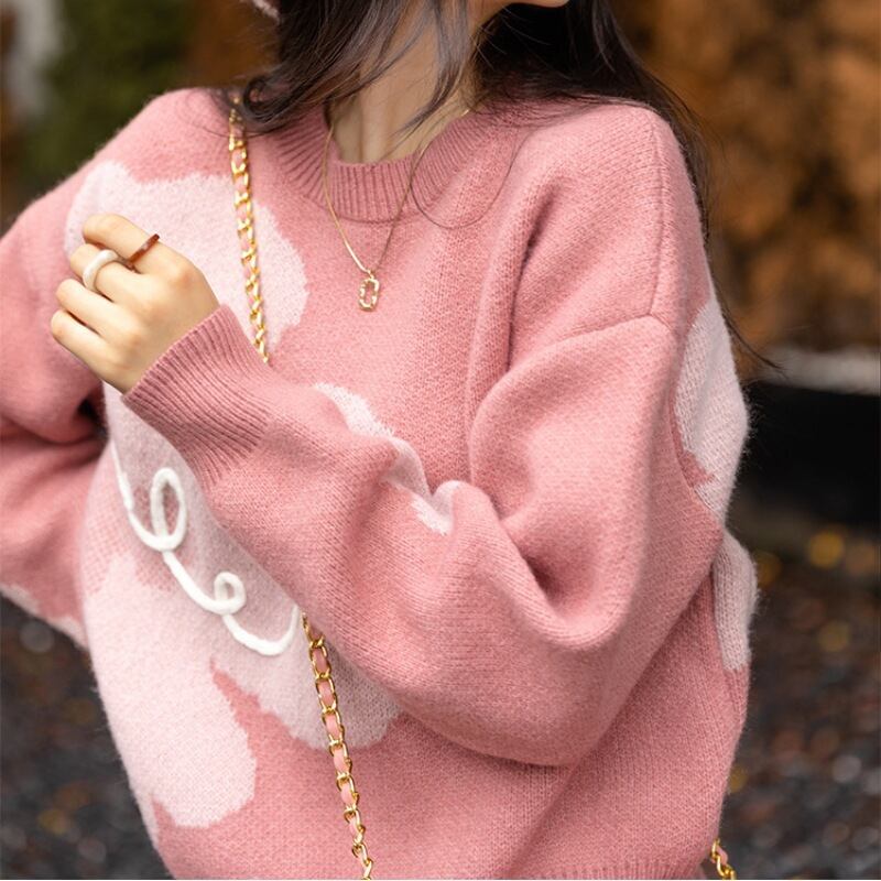 ふんわりハートジャガードニット