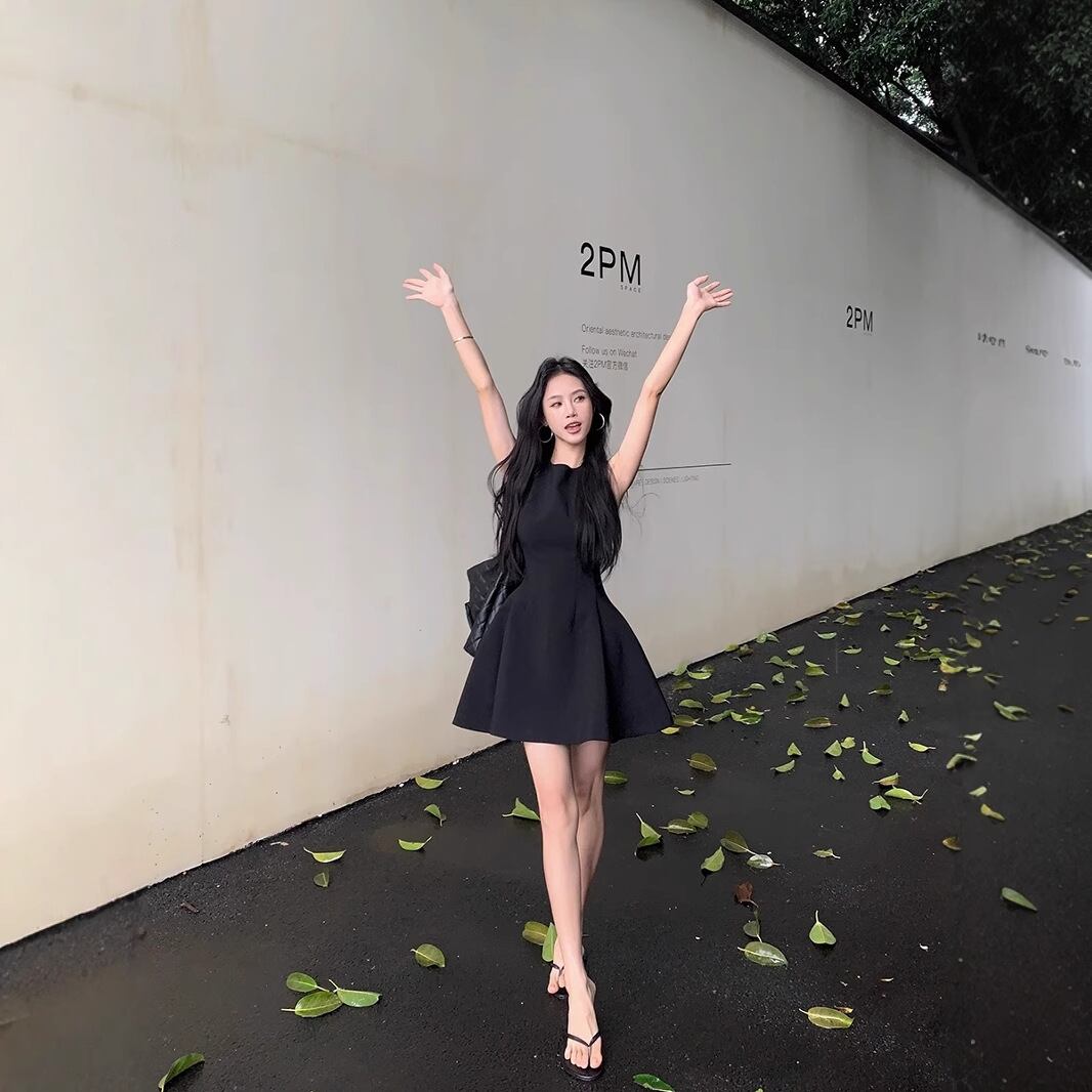 無駄のないミニマルなデザインだからこそ、シルエットの美しさが際立つ一着。ノースリーブ仕様で肩まわりをすっきり見せ、上品さの中に程よい抜け感をプラスします。