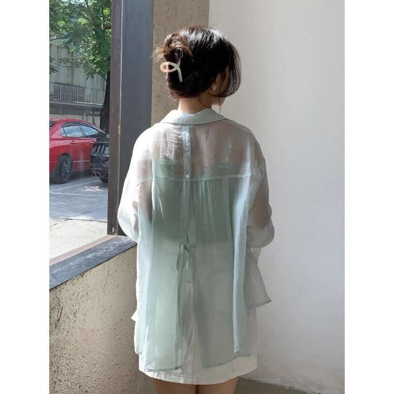 ゆったりとしたシルエットにバックのドローストリングを施し、動きのあるニュアンスを楽しめるシャツです。