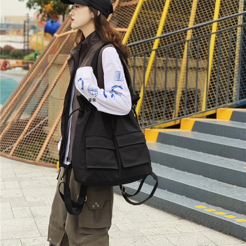 ドローストリング仕様で開閉もスムーズ。荷物の量に合わせて自然にフォルムが変化し、ラフに背負うだけでこなれた印象を演出します。広めのショルダーストラップは肩への負担を軽減し、長時間の使用にも配慮。