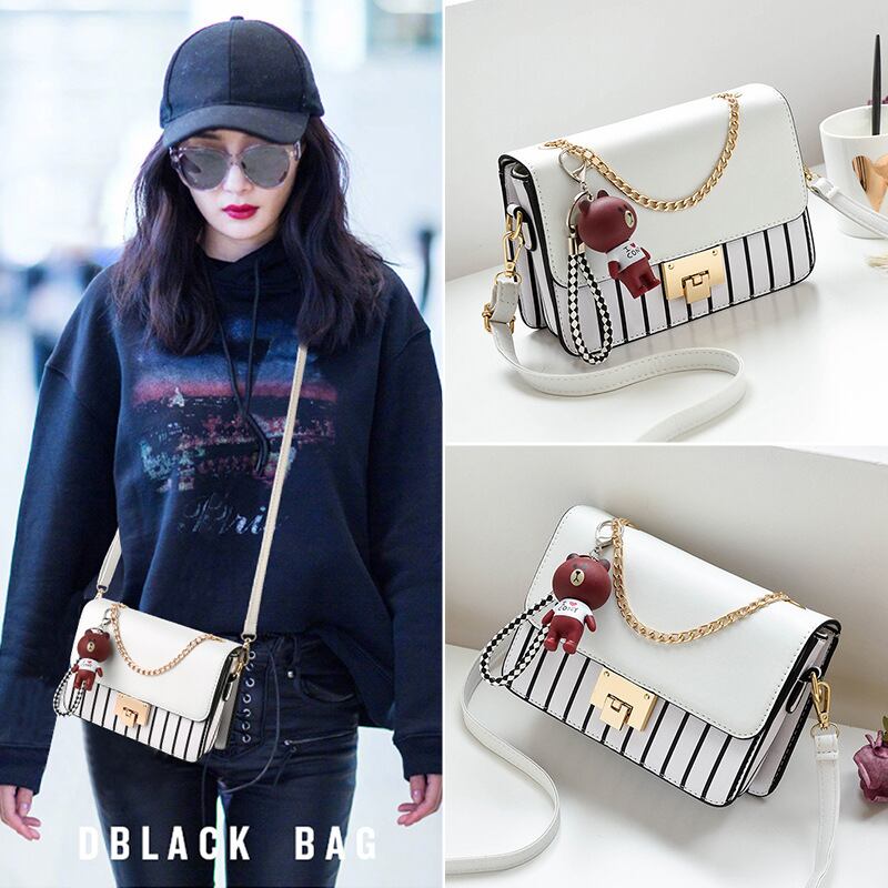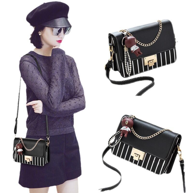 洗練されたフラップデザインに、縦のストライプがリズムを添えるチェーンショルダー。
