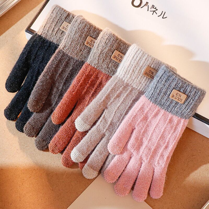 やわらかな編み地に、さりげない配色の切り替えを効かせたニット手袋。