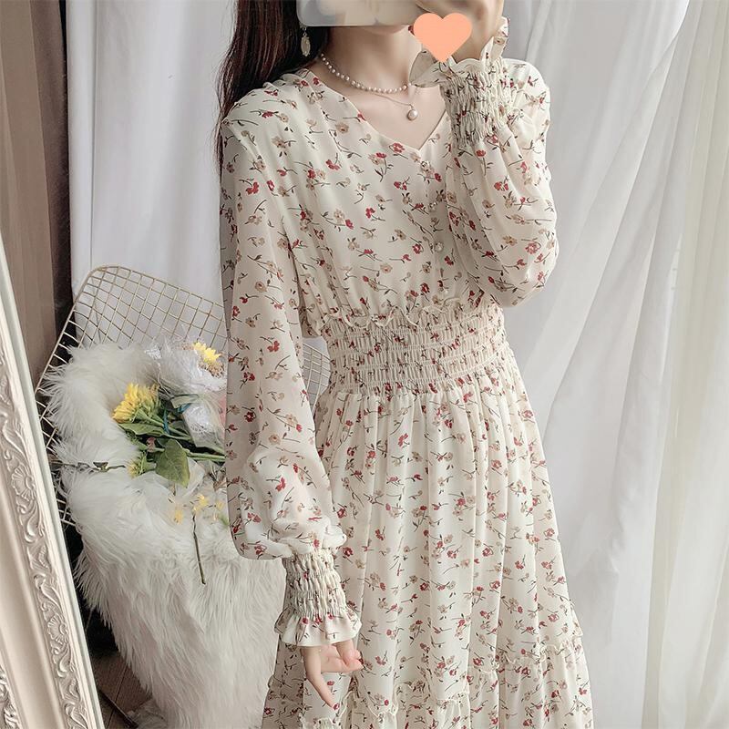 控えめな小花柄が全体に散りばめられ、繊細で品のある印象を演出します。