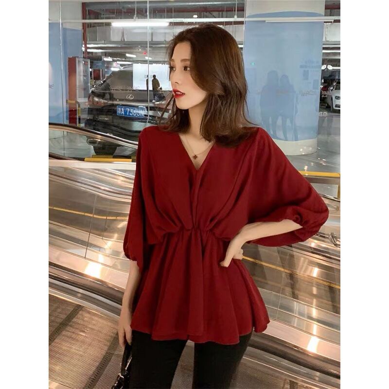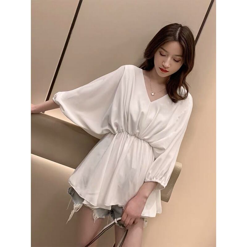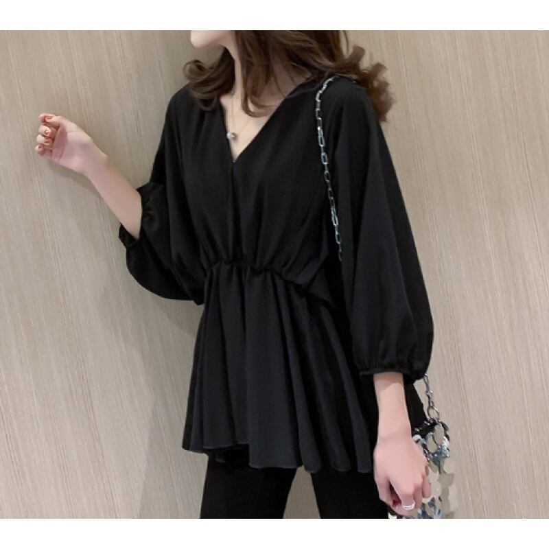 ウエストに施されたギャザーが柔らかく広がり、ふんわりとしたシルエットを作るチュニックブラウス。