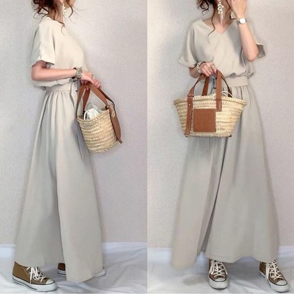 肩や胸元の開きは控えめで首元に軽やかな抜け感を作り、ウエストマークが自然に視線を集めることでメリハリのあるラインを生み出します。フレンチスリーブは二の腕をすっきり見せつつ、動きやすさも確保。程よくゆったりとした身頃がリラックス感のある着心地を与えます。