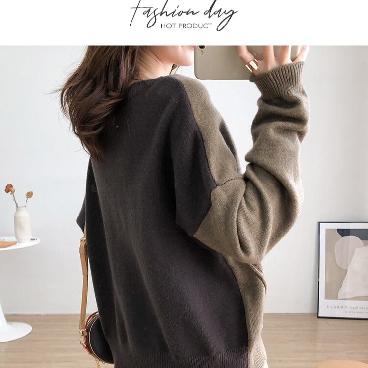 バイカラー配色 アシンメトリーニットカーディガン