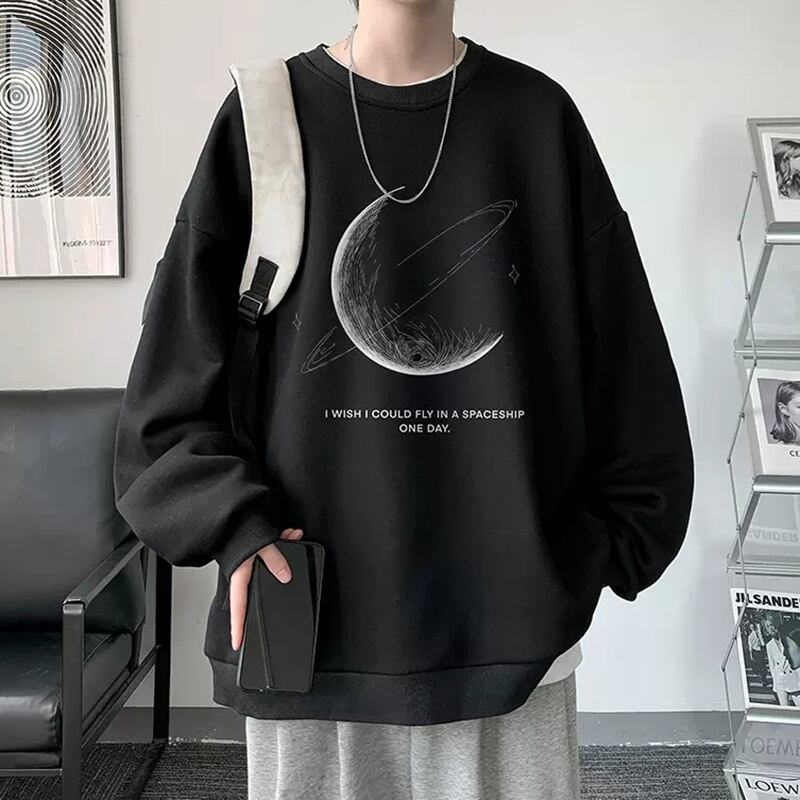 フロントに配したアートグラフィックが視線を引き寄せるビッグスウェット。