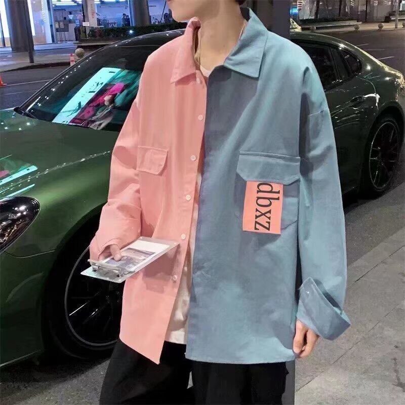 大胆な配色切り替えが視線を引きつける、ビッグシルエットのバイカラーシャツ。