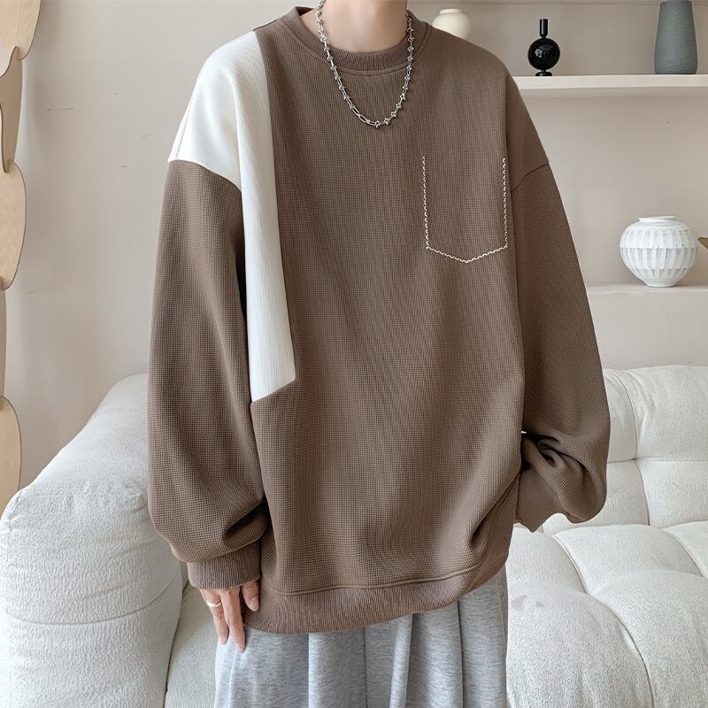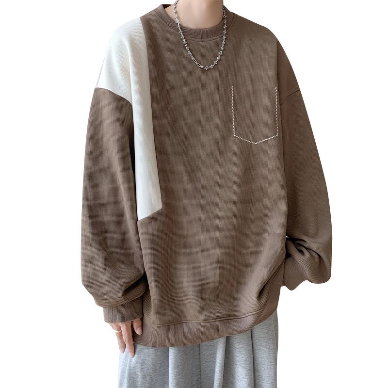 ブラウンを基調に、肩から流れるように配されたオフホワイトのブロックデザインが、さりげなく個性を引き立てます。