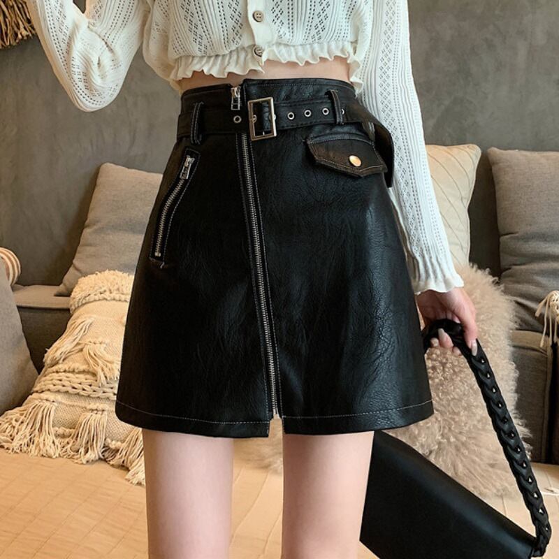 フロントジップ レザーミニスカート