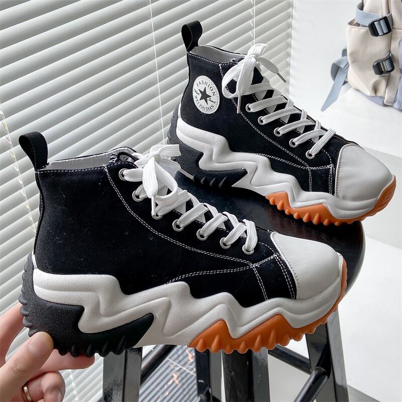 キャンバス調のアッパーに配色ソールを組み合わせたデザインが、カジュアルな中にもアクセントをプラス。ハイカット仕様が足首まわりをやさしく包み込み、安定感のある履き心地に仕上がっています。凹凸のあるアウトソールはグリップ力にも配慮されており、デイリー使いにもぴったりです。