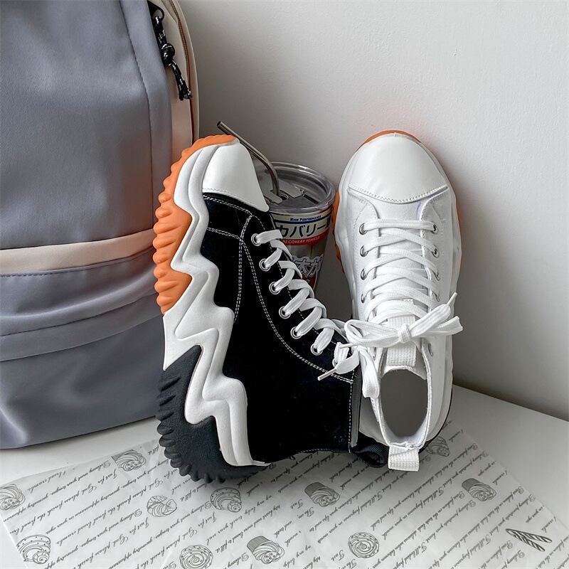 立体感のあるウェーブソールが目を引く、存在感たっぷりのハイカットスニーカー。