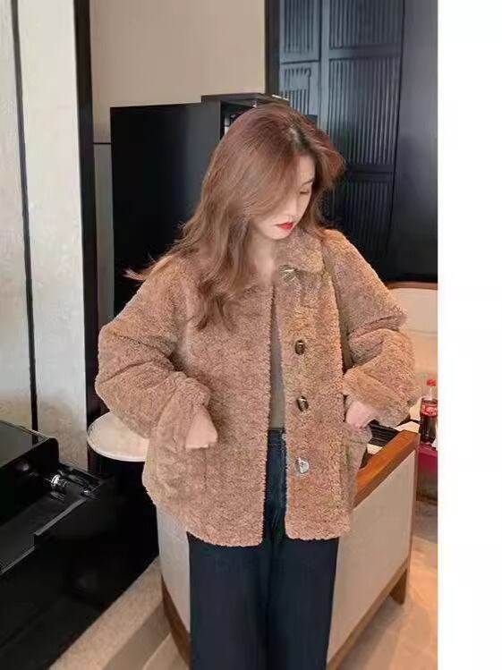 ふんわりとしたボア素材がやさしい雰囲気を添えるカラージャケット。