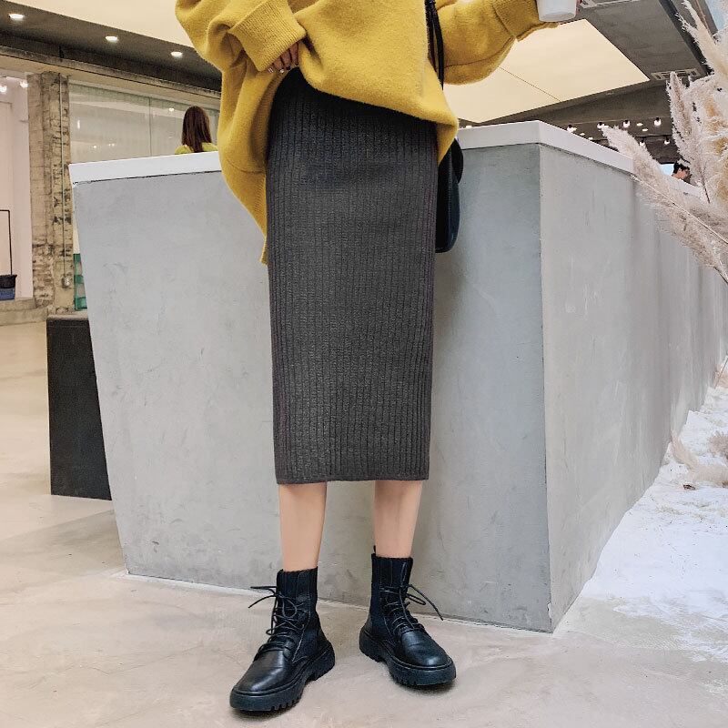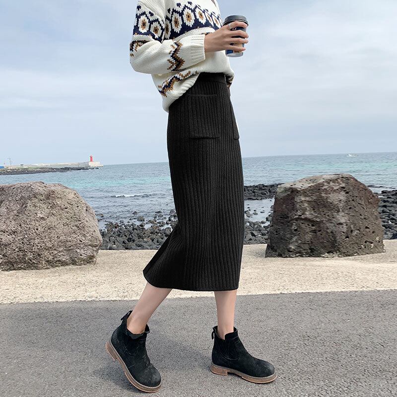縦に走るリブのラインが、すっきりとしたシルエットを引き立てるニットスカート。